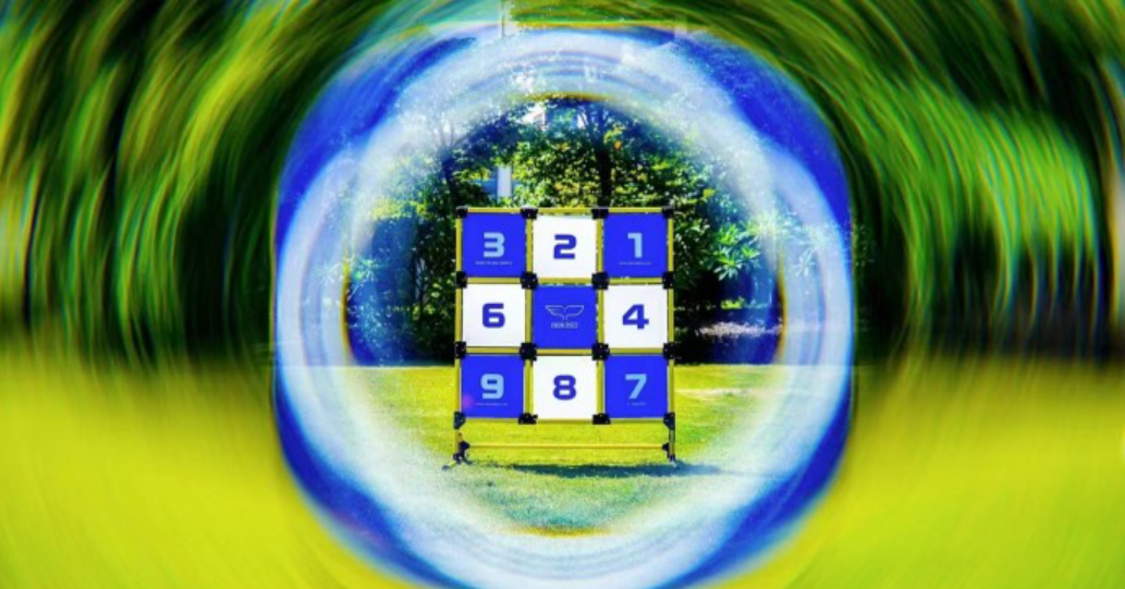 用飞盘将九宫格得数字击落,击落几号牌,得几分
