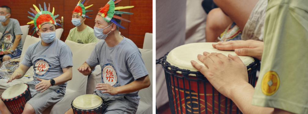 释放天性,是学员尽快进入热情又充满活动的非洲鼓节奏中。